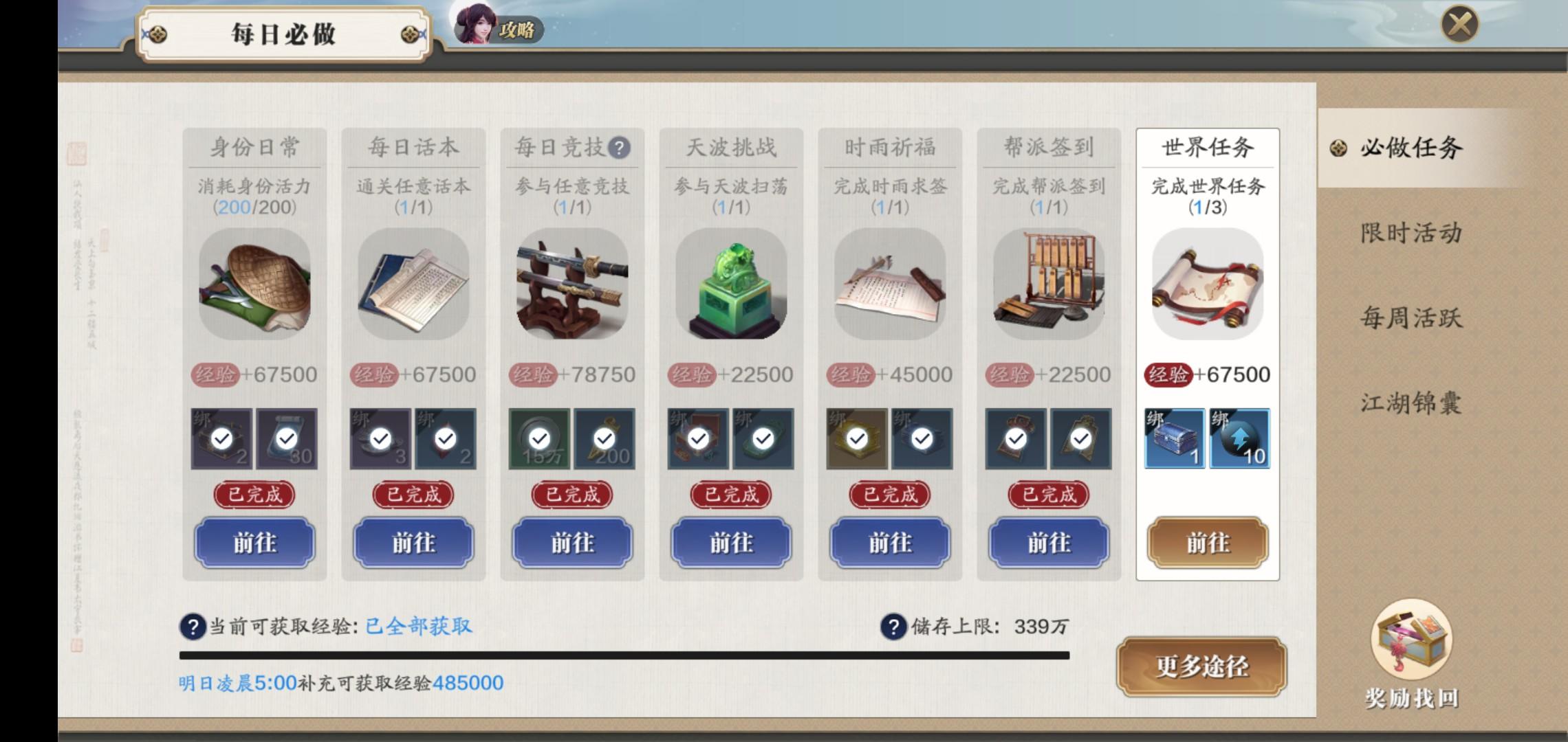 帮派和及时雨都签到了,不算我次数?活力也消耗了结果一点都不算?只能完成喝酒喝和25个世界任务??