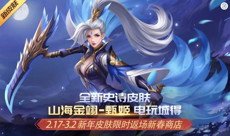 1. 新皮肤山海金翊·甄姬上线:2.16-2.23电玩城得;