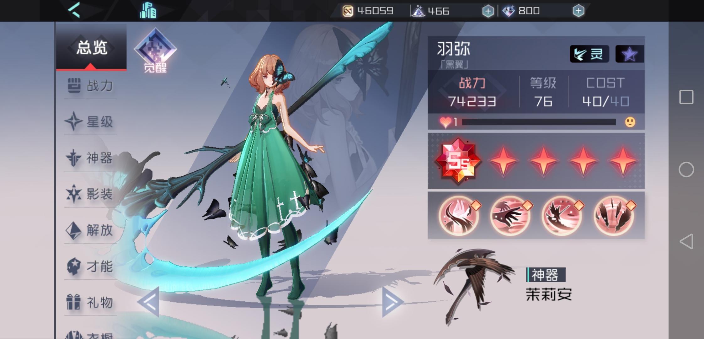 以下是我拥有的神器使,目前不知道接下来该怎么培养了,我目前考虑把恋人转移给朵朵,然后去觉醒她,我手头有空余的A结晶20多个,努力一下应该可以到三觉这里,然后影装方面我很少很垃圾,也不知道要怎么弄,目前76级,神器使68个应该是,能够不靠运气获取的神器使还有兑换商店里面那一群和白夜馆的夜,然后想先把SP0的影装变为四阶,然后买一下朵朵的专属影装