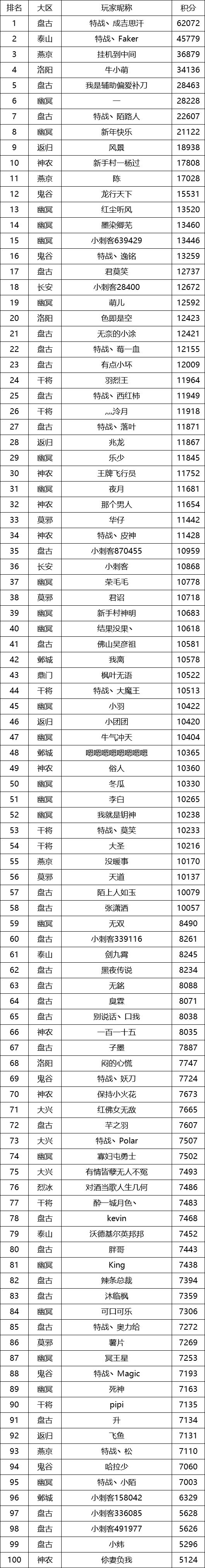 让我们一起来看看本次金蛋活动积分TOP100吧!