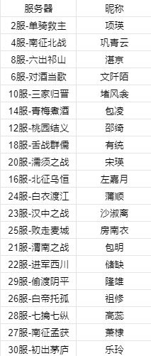 全部封禁名单,请前往《三国志威力无双》官网查看。