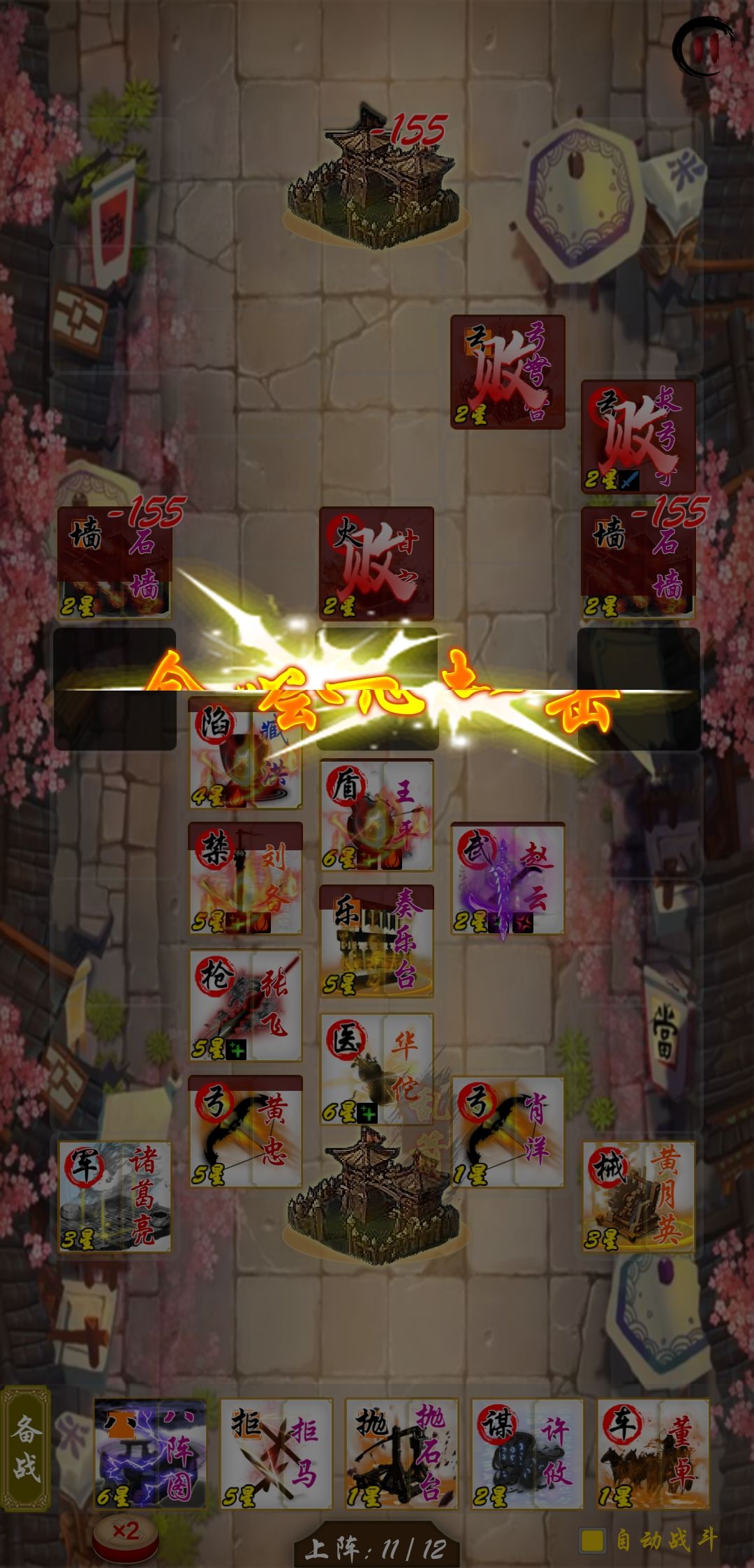 弓兵关,保乐台防火船刘备头上放任意炮灰。