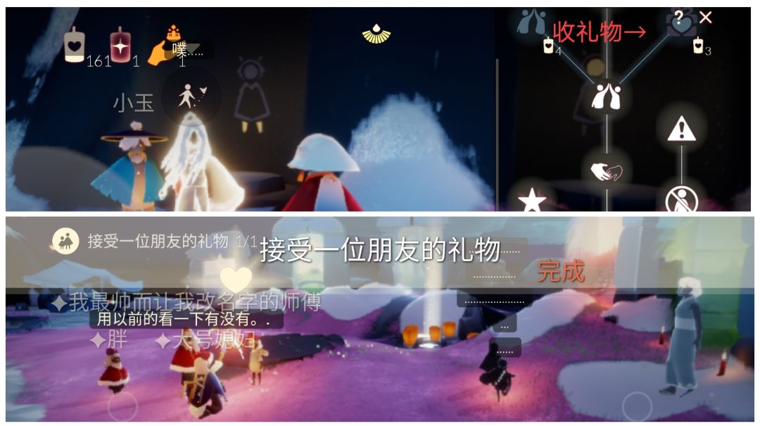 1.收礼物是任意好友送,你送的是可以帮助好友的