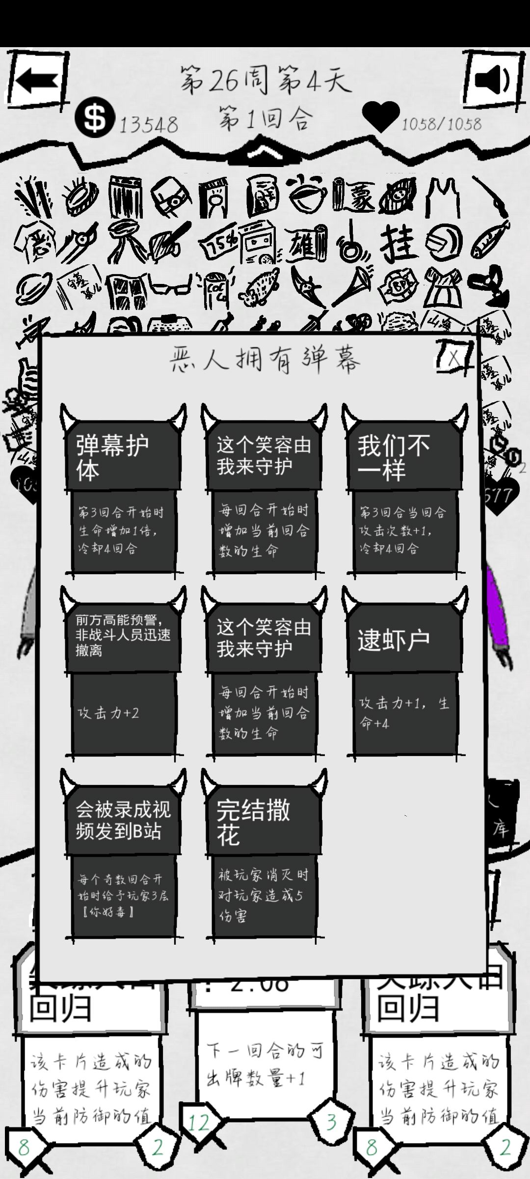 玩到二十几周,太晚了,实在不想继续了,恶人弹幕一共被我吞到只剩八张,4连击达到了180每击,很多个很受伤,导致叠出了2000+伤害(其实可以叠出更多,但是敌人血太少了,叠着叠着,他就没了😭