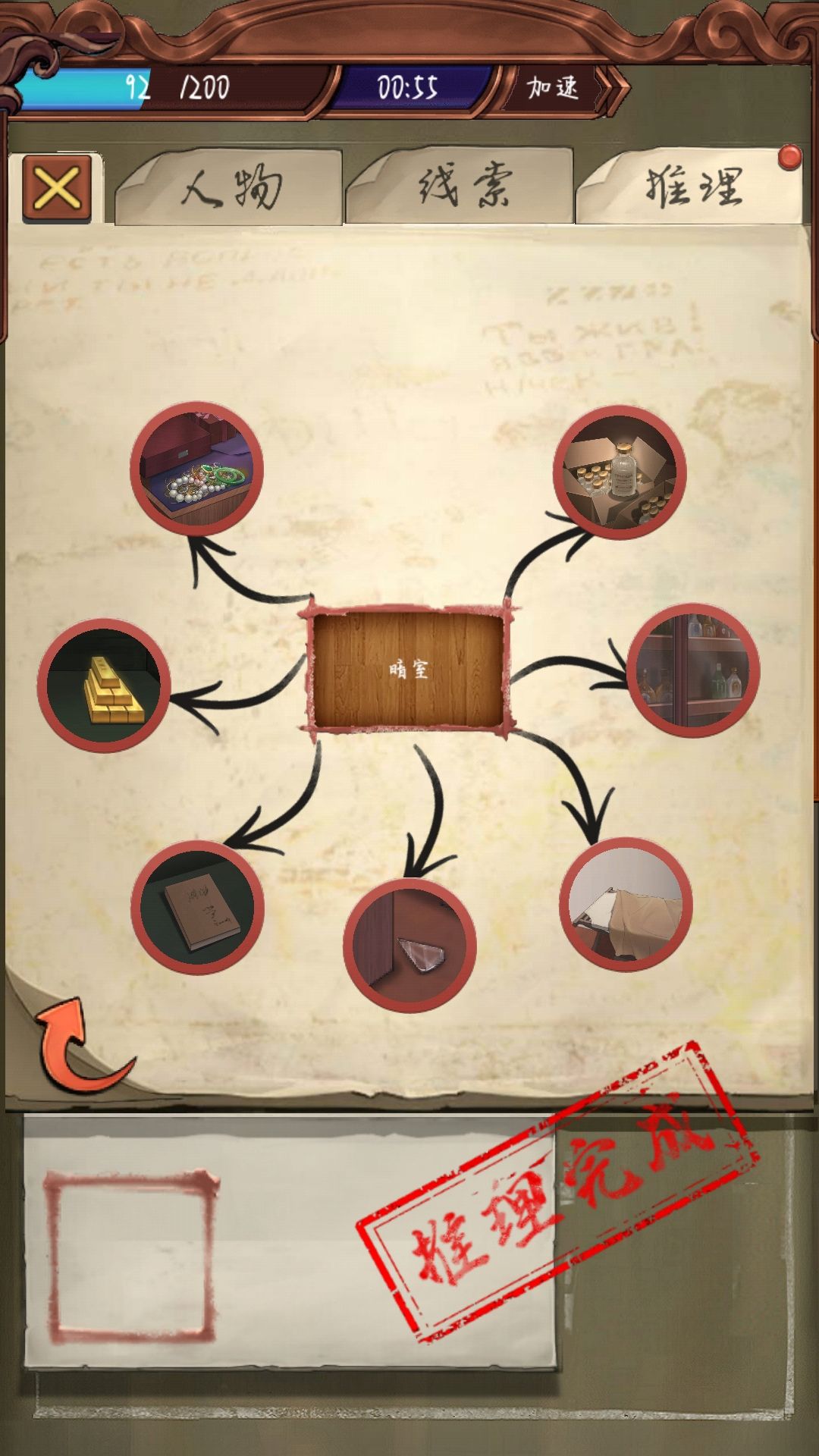 在雷世容的办公室里点那个“日进斗金”然后会出现一个保险柜,密码是那个请柬上的日期“1116”打开后会有一个暗室
