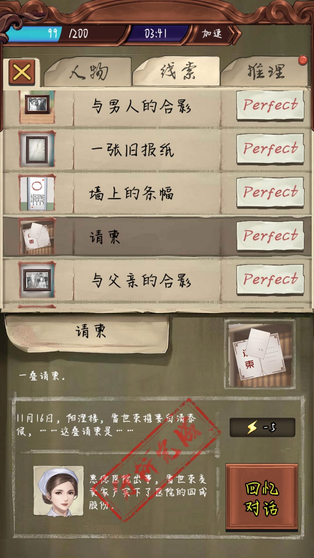 暗室衣柜里也有个保险柜,密码是跟白清护士长那里那副墙上挂的条幅有关,密码是“1314”。对,你没看错就是一生一世(这密码把我整乐了,你说你在私会别人的地方里放个保险柜,行,你有钱我也就不说什么了。可问题是你密码给整个这?还有这密码跟圆周率有个毛关系啊!找的我难死了,还是看论坛往下走的……)这些弄完就可以结案了,然后下面是结案的过程,对了,这个我是按照顺点的啊。