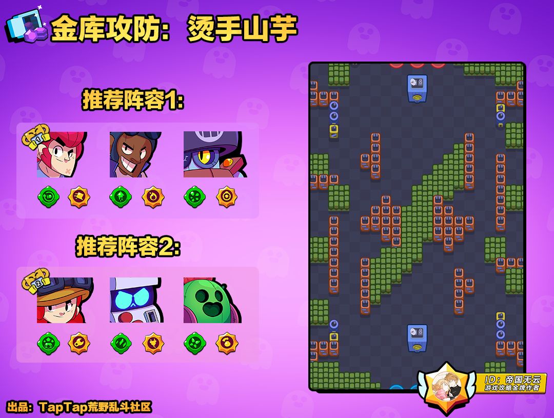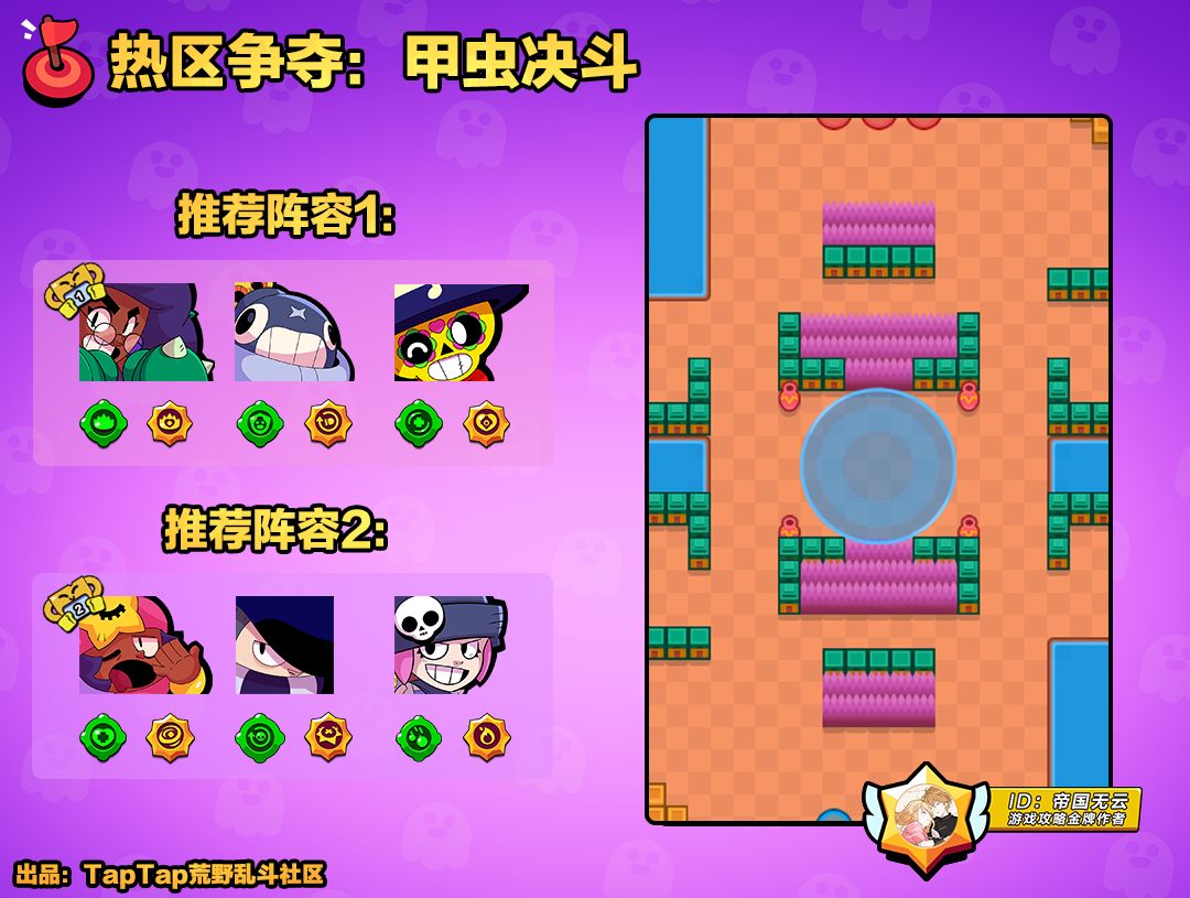 开局达里尔走中路,可以先蹲一波敌方中路的英雄。如果觉得达里尔血量不够,卡不住中场的话,可以换雪莉公牛。柯尔特、布洛克分别走左右两路,利用远程优势两侧输出。这个阵容就是换路,不需要积攒超级技能,输出门槛低,且单体输出能力都十分不错。