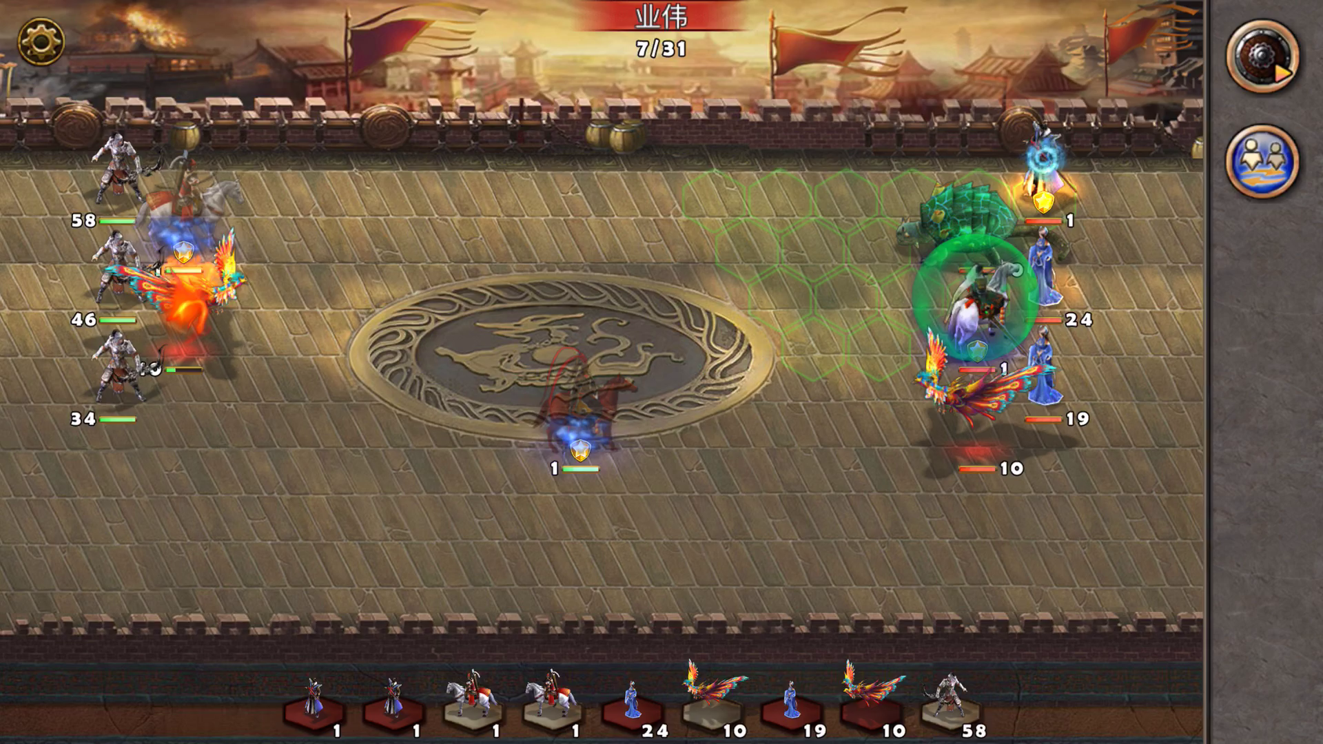 第一回合:刘备激励贾诩双动输出鹰卫,配合散仙秒,太史慈开大配合鹰卫四动秒散仙,打残贾诩,乌龟冰鹰卫。
