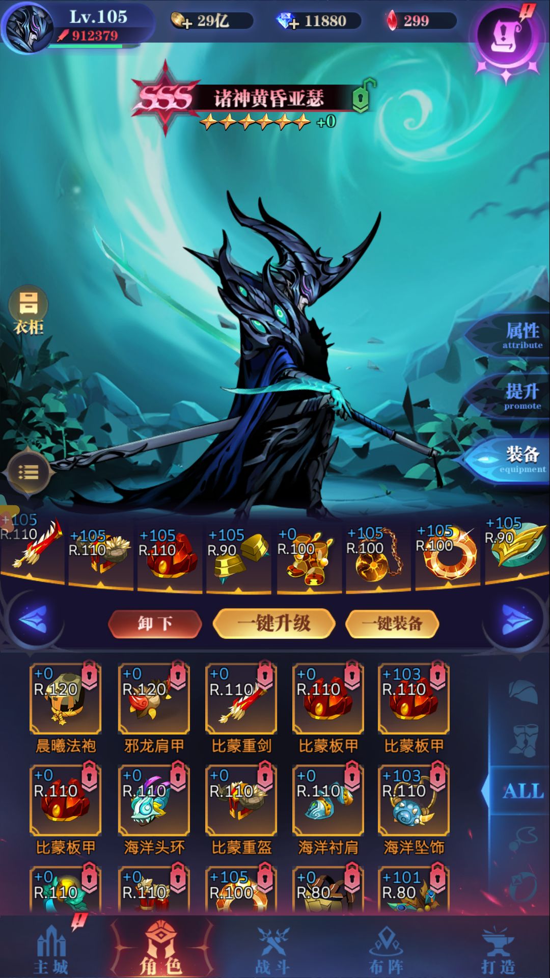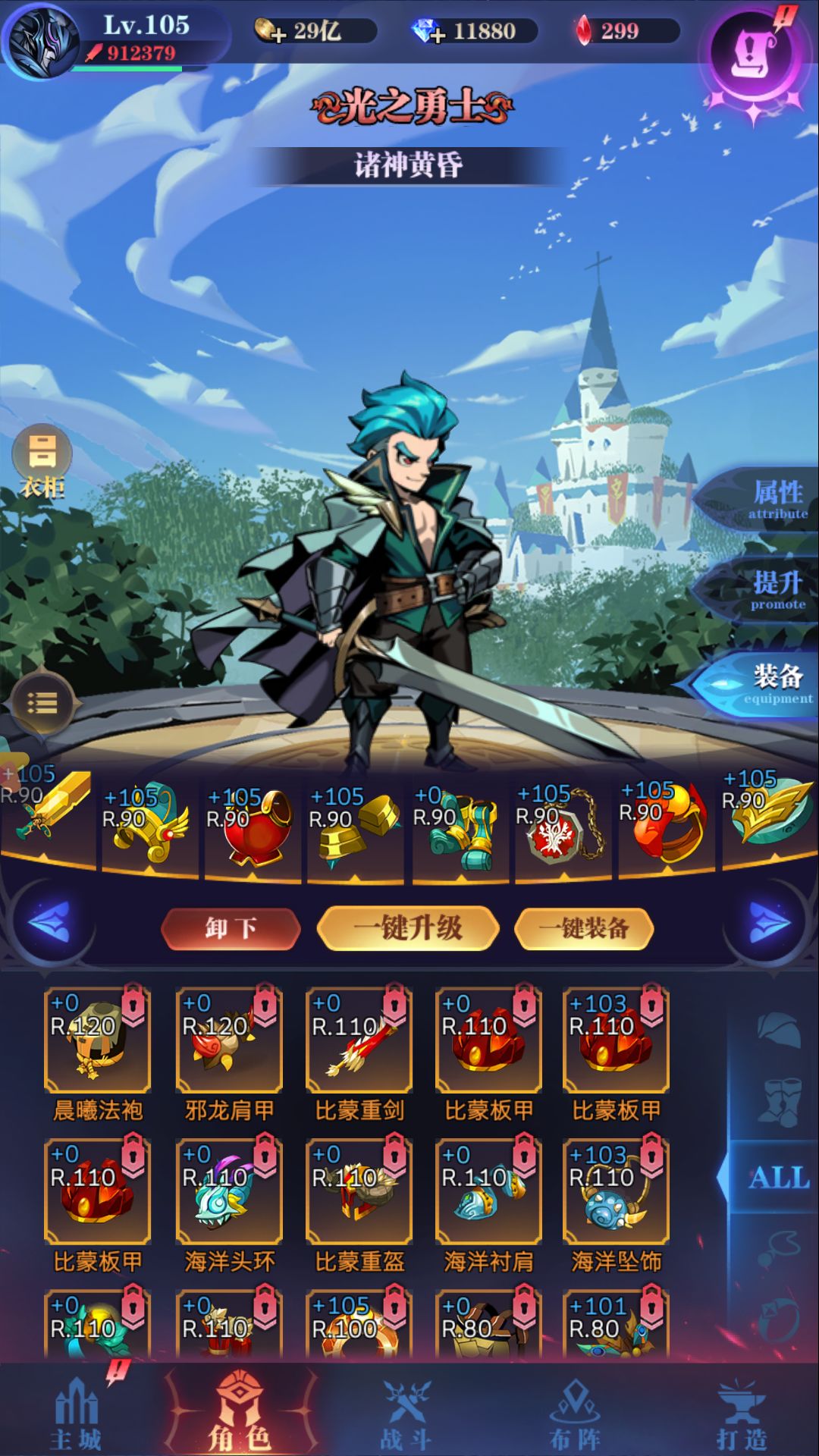 说一下装备吧,亚瑟不像狮子,所以血量也要兼顾,不然会被龙后花簇魔导之类直接秒。所以套装一直就是光套加上祝福。后面换的禁卫和牧羊首饰加上自然肩膀衣服。出暴击原因是因为亚瑟攻击有6下,一个图下来可能要攻击几十次,这样算下来暴击多一点也不会亏。再加上出了祝福以后熔炼一直存着。所以用来鉴定装备的熔炼值比较多。男主凑一套单技能100施法,存点熔炼值,加上无尽币。早点给亚瑟做套比蒙