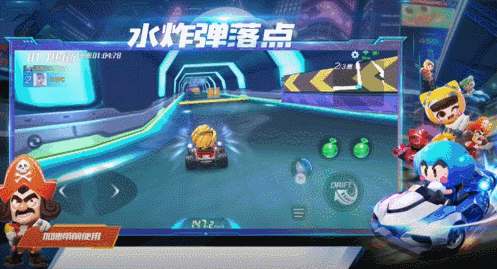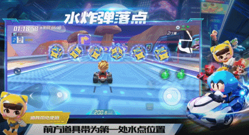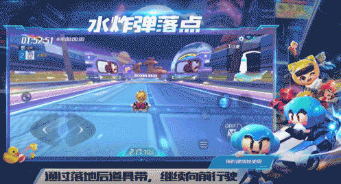 车友们在此处使用水炸弹,可以攻击终点线前的对手,但是,不要忘了和队友配合哦~