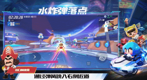 被攻击的对手由于刚从加速带的高台上跳落,不仅速度快,而且在空中无法通过刹车或方向键来调整车身,所以即使对手发现了前方有水炸弹,也难以避开。