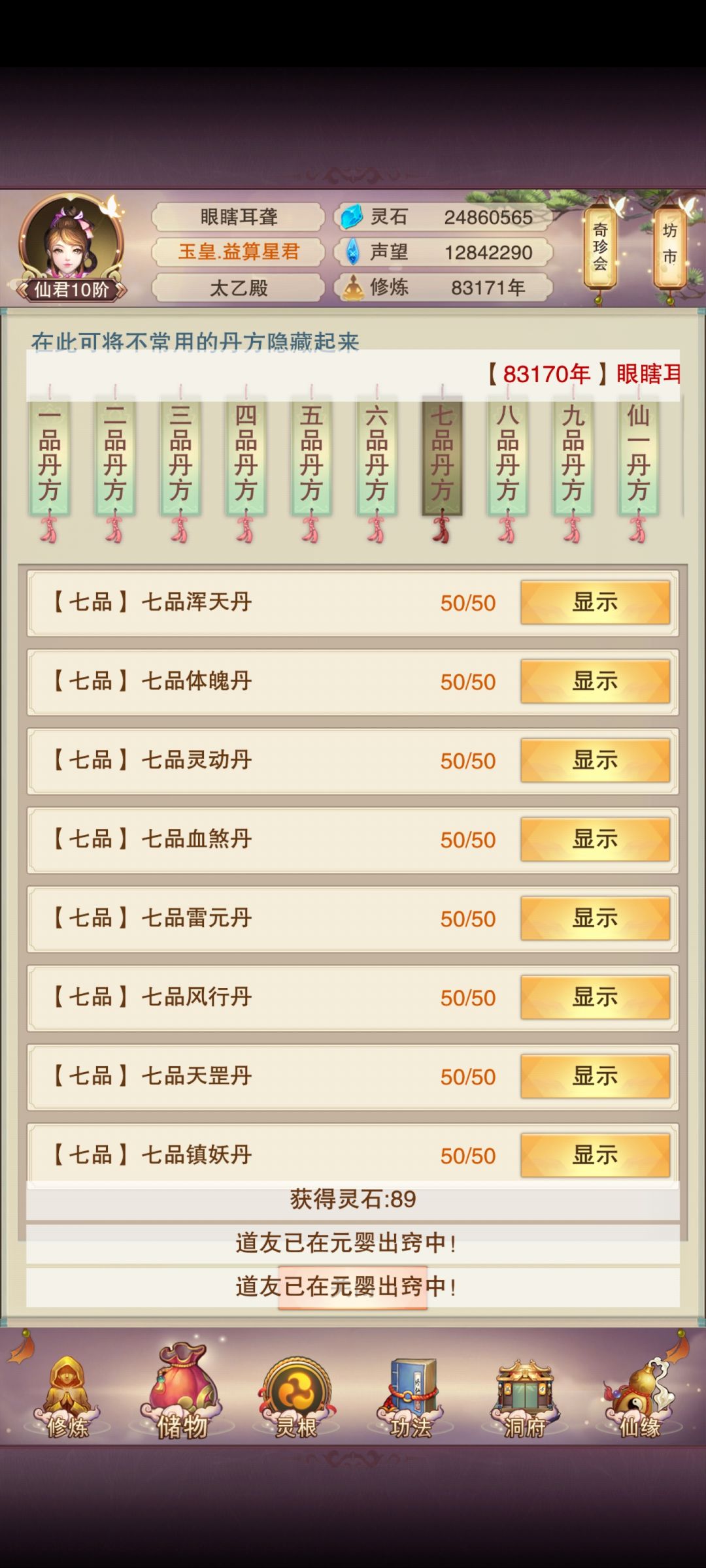 一万年了,没悟到一个丹方,就这两个七八品的洗髓一直没有,连仙品的丹方都悟不到,三元炉➕门派一起悟鸟用没有啊