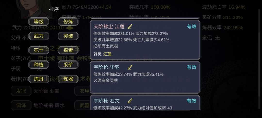 灵力增加的速度3.93 武器天阶拂尘.江莲