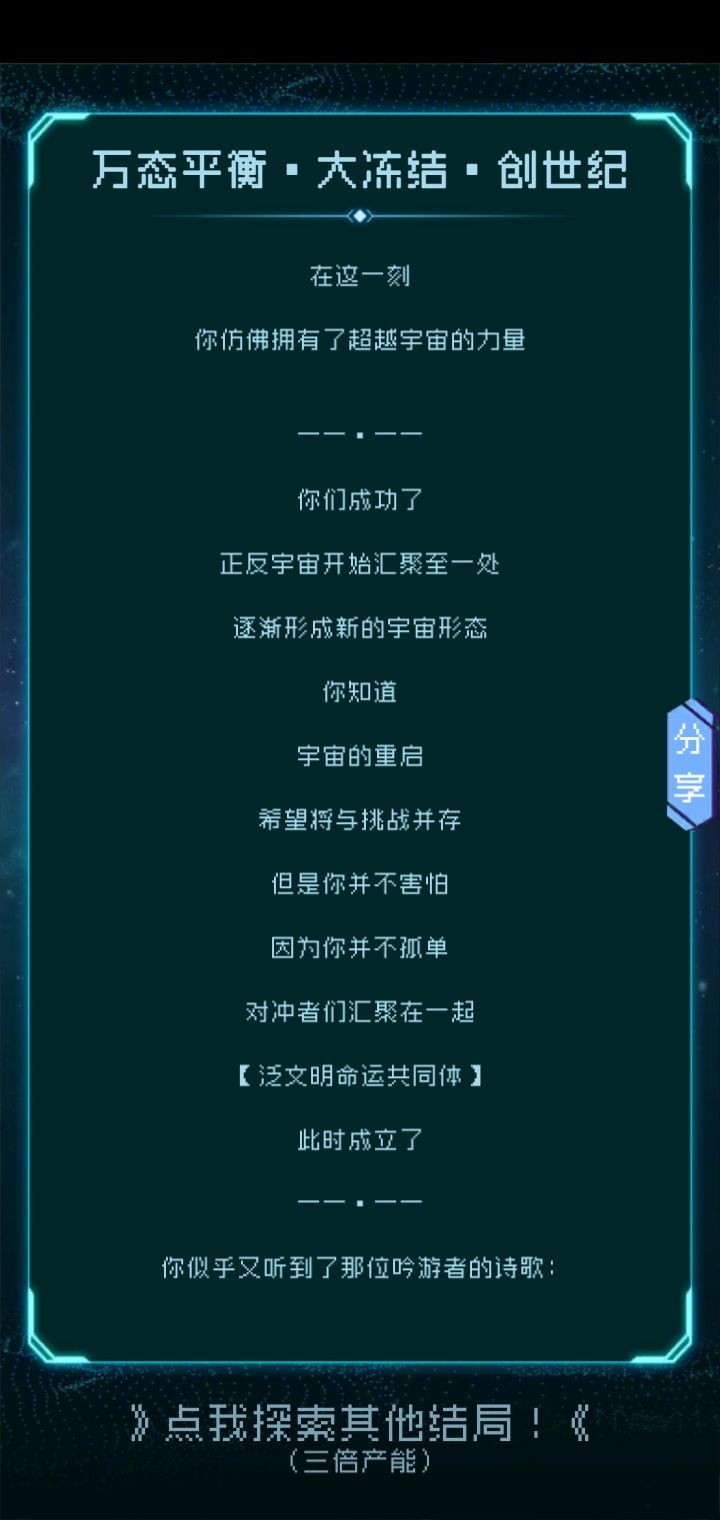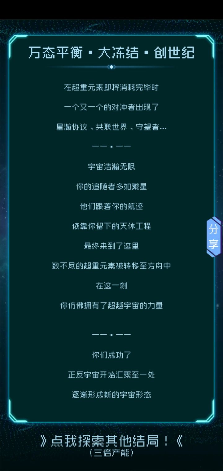 九个星球全共生,五号星球选机械嬗变(机械嬗变属于比较高级的共生)注:机械嬗变在五号星球和逐光的对话里选择投放技术才会出现在大抉择里!!!