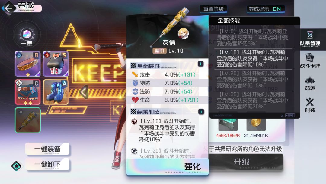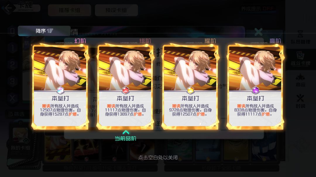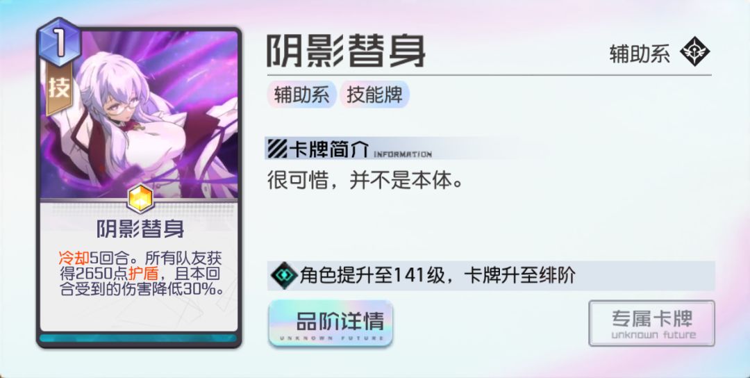减伤,对于减伤我们最为熟悉的便是佐伊的阴影替身了,耀阶减伤30%(本回合),而瓦列莉亚的专武减伤是本场战斗(全程)。