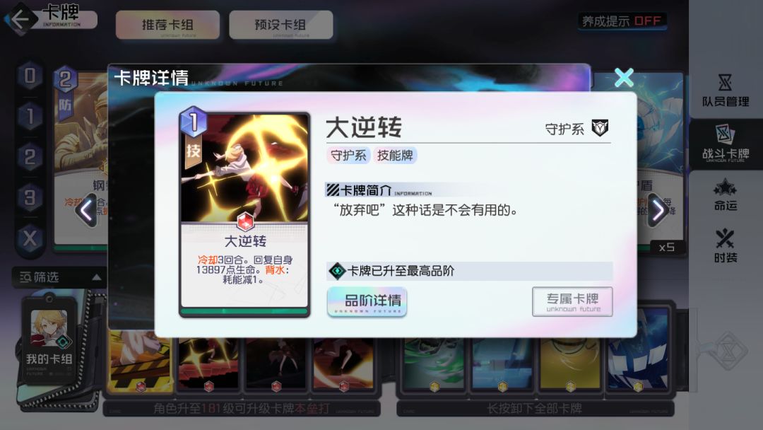 【未来】:主防御+回复能力,并抽牌+压缩牌库。