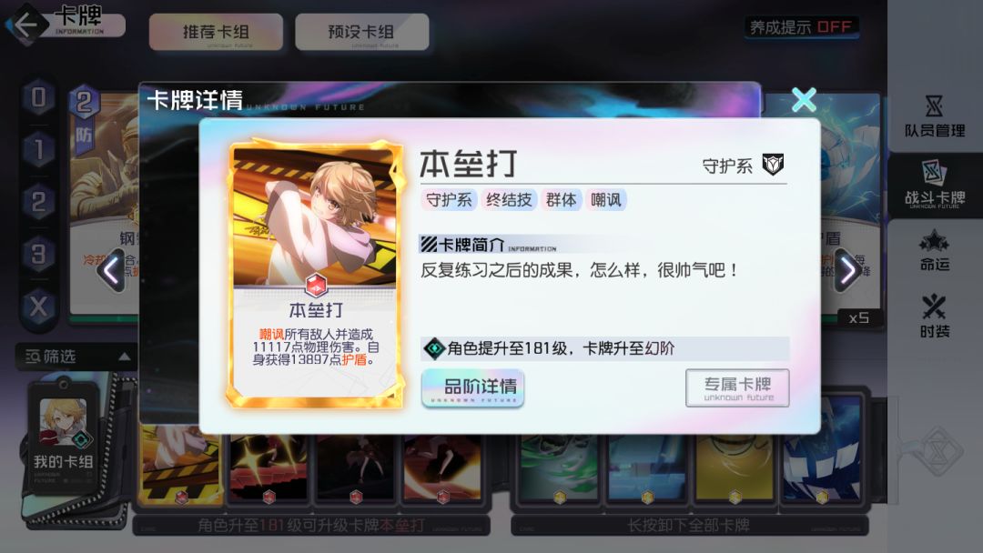 这张强化卡牌的给人感觉非常扎实,每回合自动产生护盾,可以尽可能抵挡敌方的伤害,节省出更多的能量点去进行更多的操作。