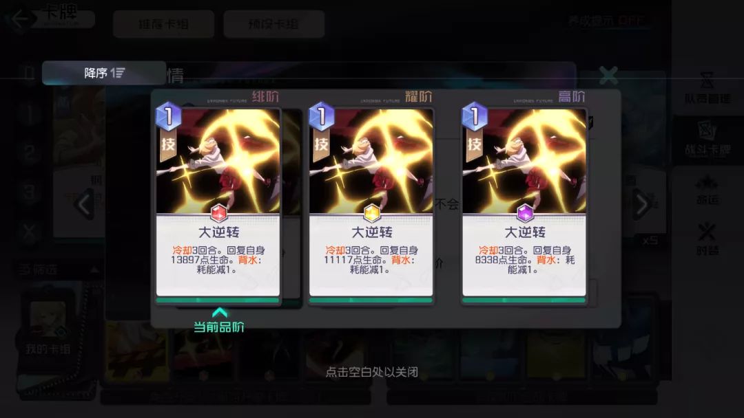 冷却3回合,回复生命值,在背水状态下耗能为0。