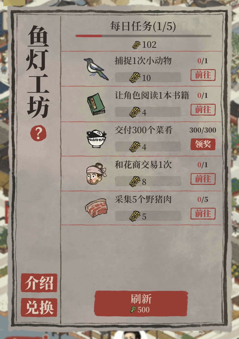 第一次免费刷新,第二次消耗1000铜钱,第三次消耗500蔬菜