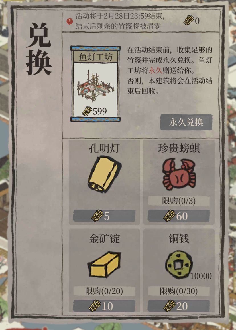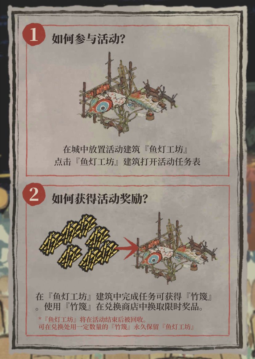 完成[鱼灯工坊]的任务即可获得[竹篾]和[孔明灯]