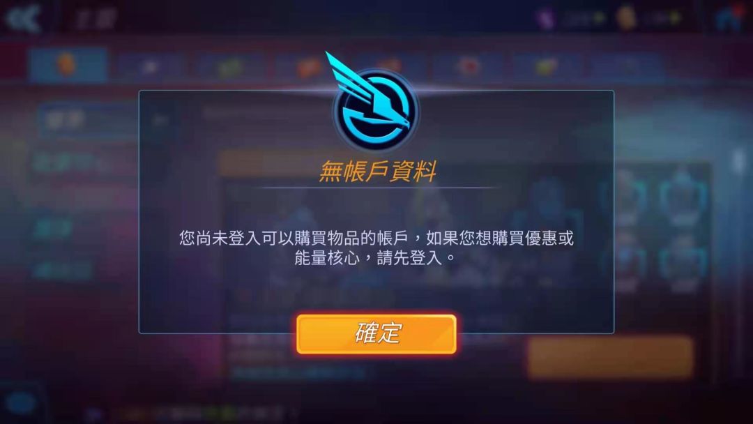 然后就是,虽然我看到的用能量核心购买的商品上面是有直接标价的,多少多少个能量核心,但是呢,我还是买不了,点了之后依然会提示我没有登录可以购买物品的账户。