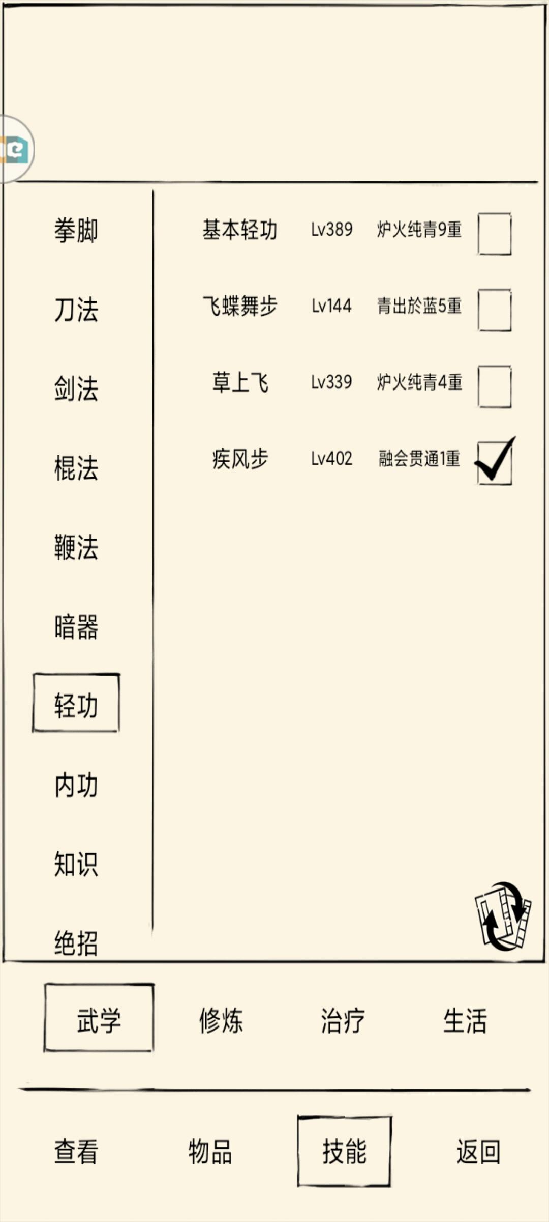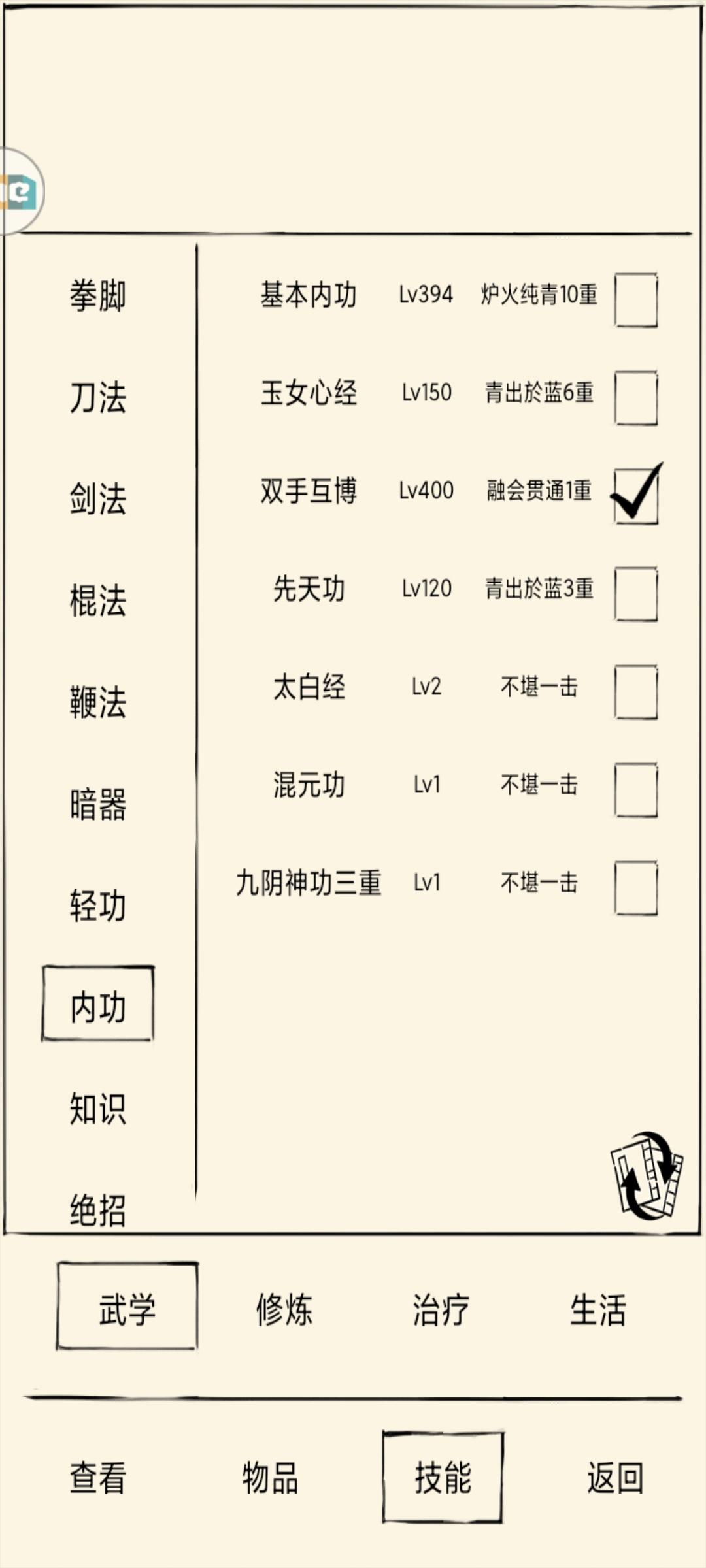 400双手互搏匹配,400轻功,150防御。