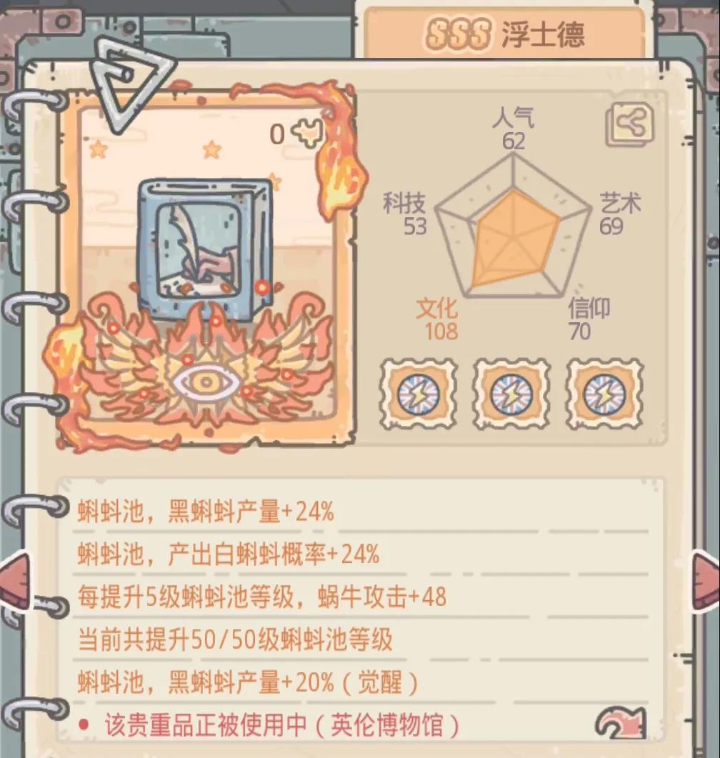 那么勋章的加成又重新变得重要起来,升级到5星,放置在英伦博物馆,可以让勋章产量+30,巧用药水,省点橙水也能达到这种效果,请看【最强蜗牛】炼金试剂——超详细攻略,如图所示