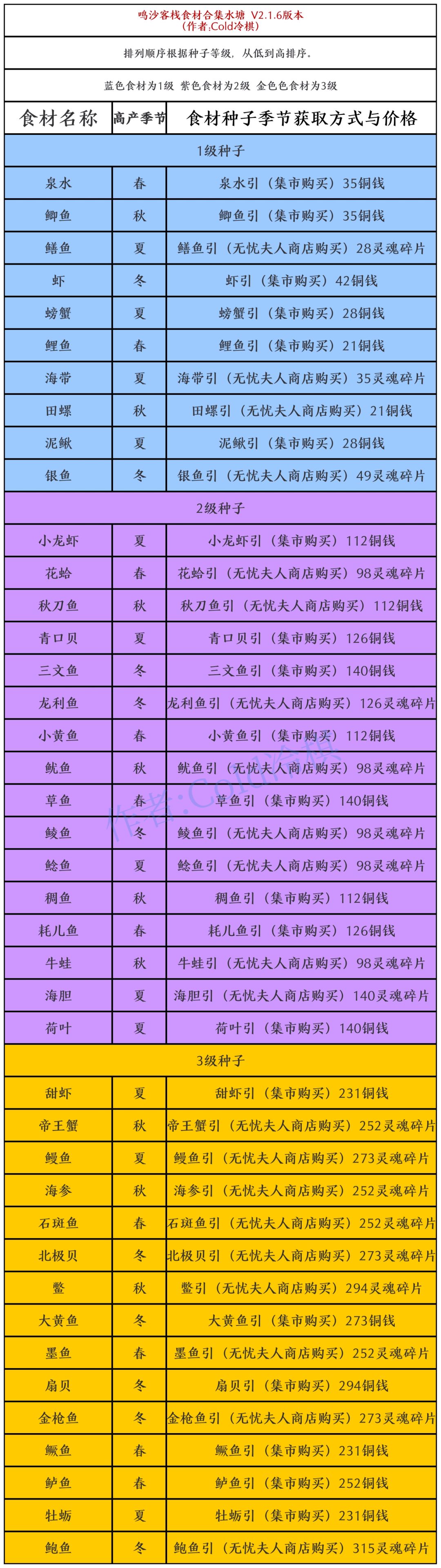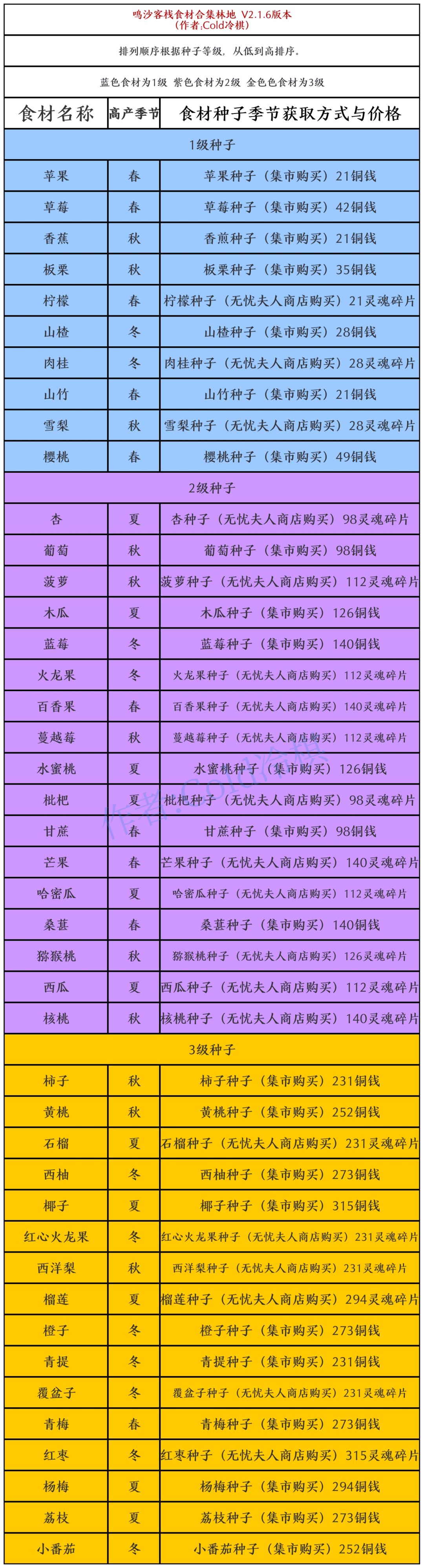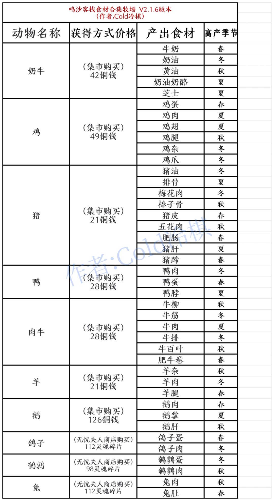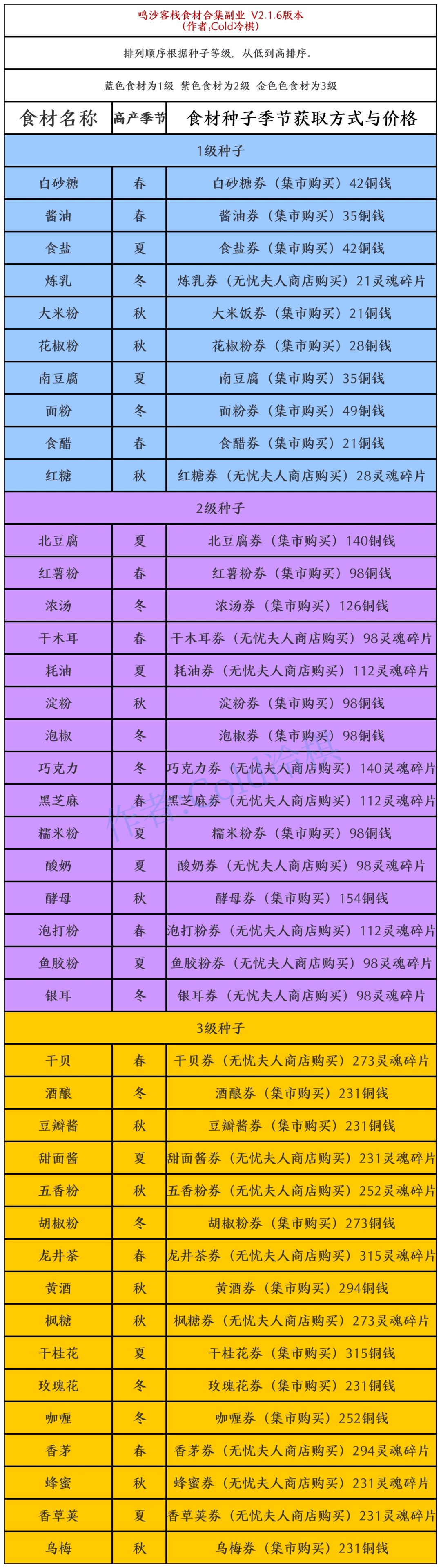 (不玩了,不更了)食材合集,获取方式价格