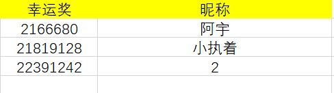 感谢大家的热情参与,以下是【幸运奖】与【参与奖】获奖名单,奖励会在3个工作日内发放至大家的游戏内哦~