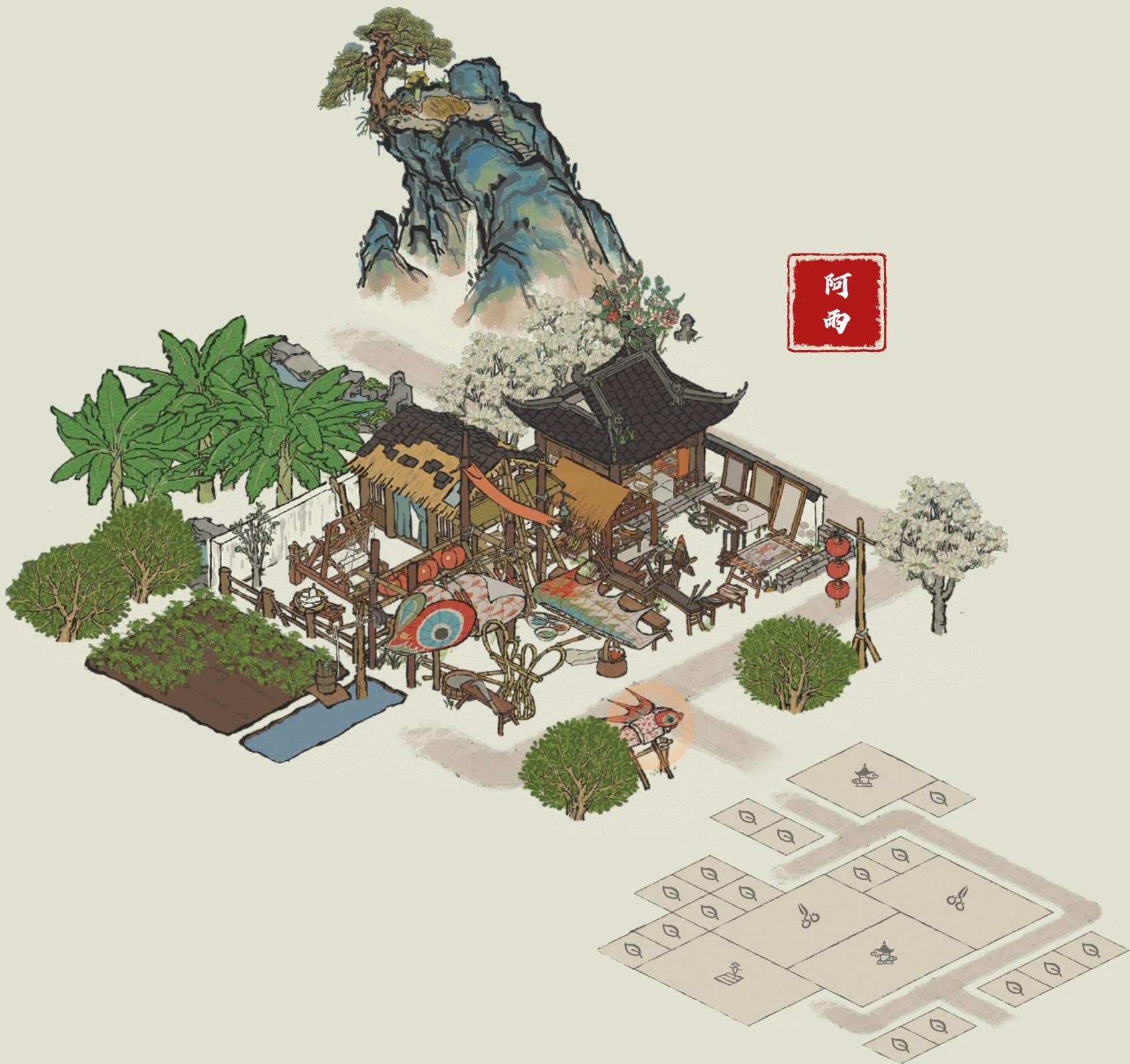 丑萌丑萌的鱼灯工坊,而且感觉还破破烂烂的亚子(错觉)😂并且看着还挺大的,再大点就能压过饭馆了…个人觉得都比较适合放城外。