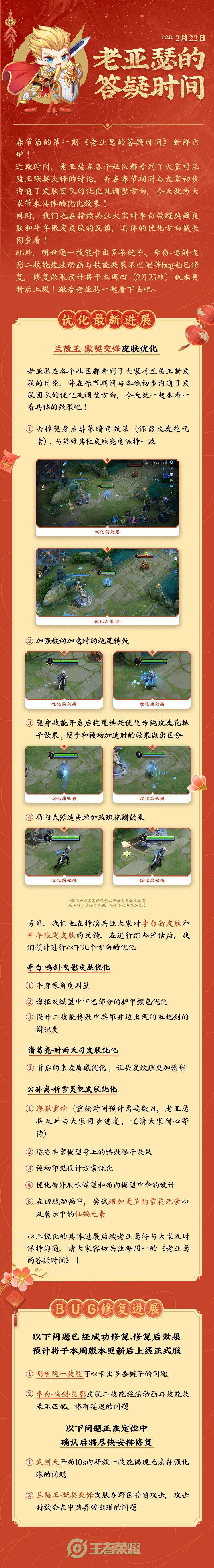 老亚瑟的答疑时间|兰陵王新皮肤优化效果,李白新皮肤、牛年限定皮肤优化计划