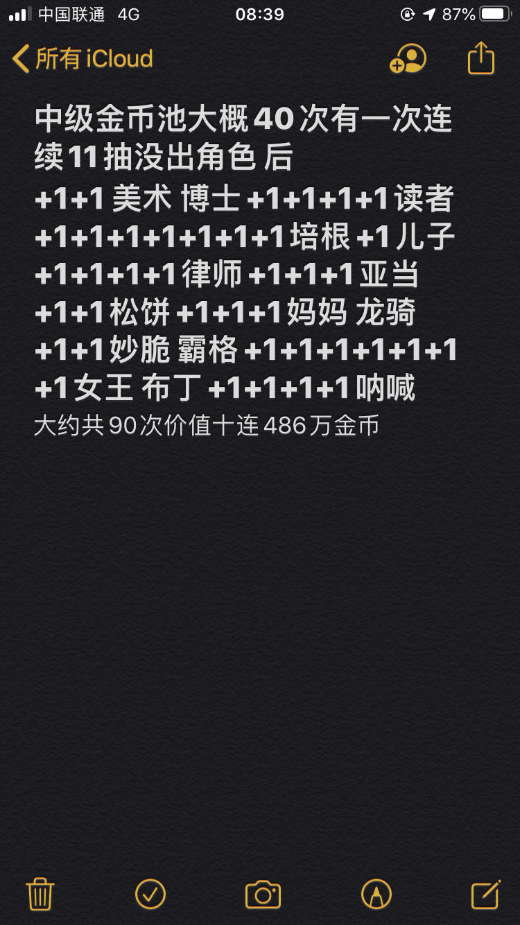 不非不欧吧,大概90次十连,是前面连续11抽没出怪然后才开始记录的。给大家看看一般人情况