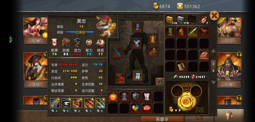 黄忠装备也比较随便,水镜越多越好,没有也没关系。