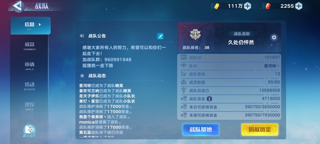 久处仍怦然诚招战力:12.45万左右战力的成员,要求活跃积极参加战队活动,有意向加战队群:960991948