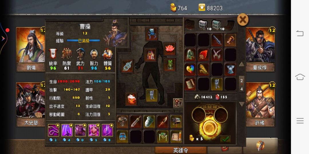 阵容方面:萌新上曹操刘备万金油组合。装备方面如下。曹操13或14速都行,刘备11速,如意面具是必须上的,很关键。手速不变的情况下可以自由搭配。大部分人应该问题不大。