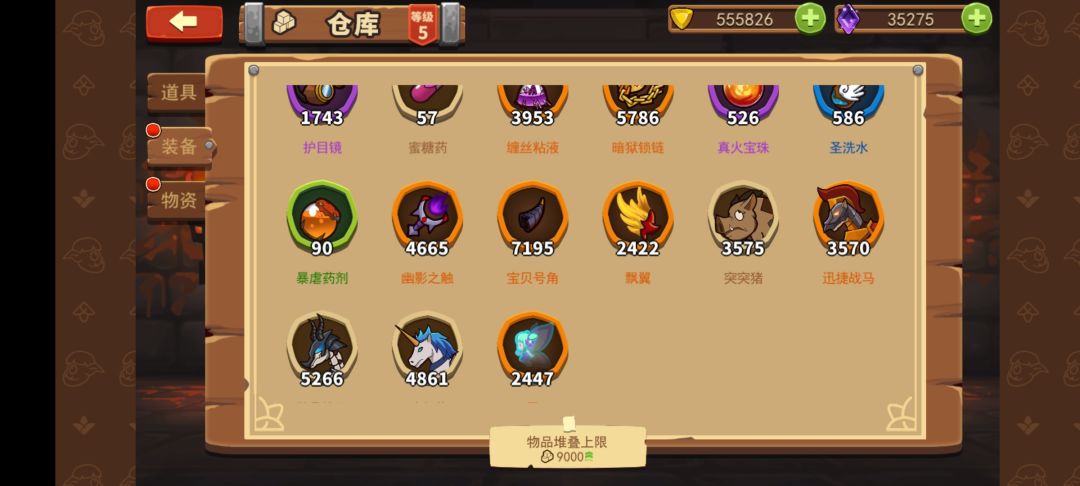 英雄进阶50级到头,等级虽然还能升,但是因为BUG装备不显示升级选项了。我虽然充钱不多,也有两个L英雄了。麒麟就是个BUG,有50级L麒麟估计可以挑翻全部关卡,我优先50级影魔,就卡在了8-25。不过反正后面也没几关了。装备,资源大部分爆仓,唯一卡住我的就是魔晶。上线无事可做,看看当天的装备交易,选个最贵的加速爆个仓,日个常,然后就下了。想练新英雄却卡进阶之证,一个50级培养周期是半个月,还不算新英雄的装备和经验的耗费。实在不想等了。
