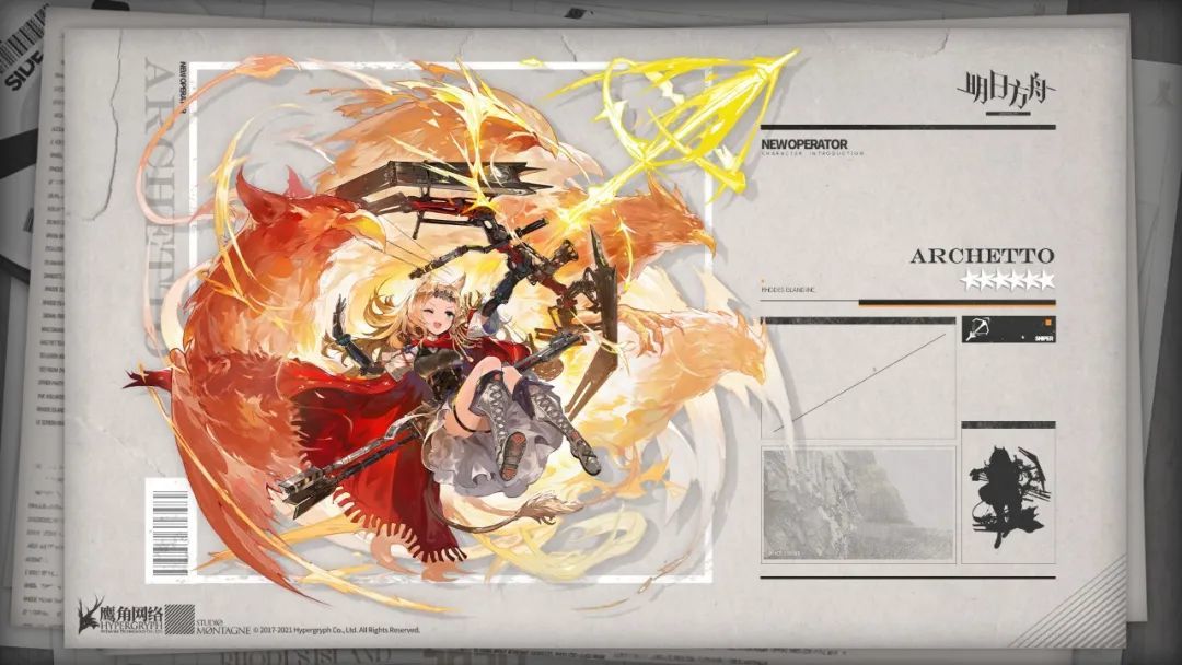 六星狙击干员,空弦。这位新干员的种族是黎博利,对应着现实中的“鸟纲”。在她精二立绘的身后,果然也出现了数只英气十足的鹰首形象,呼应着这一点,如下图所示: