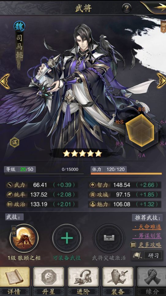 司马懿进入战斗前20秒开始隐忍(无法使用主动武技),全军受到伤害的30%(统率加成)延迟5秒结算;且全军每次受到谋略伤害,司马懿将获得狼顾之相(每个狼顾之相,能够吸收自身受到的1次伤害并储存);当隐忍结束时,司马懿原形毕露,将狼顾之相所储存伤害的50%(智力加成)反给智力或统率最高的敌军;身为主将时,当我方全军都存在减伤时,司马懿每秒增加1%的神谋,且隐忍状态下自己受到的伤害在延迟结算时降低6%(统率加成)