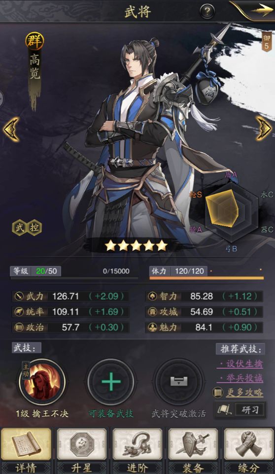 蓄力后释放,对敌军主将造成167%的武力攻击(武力加成),并使敌军主将和自己都陷入犹豫持续8秒