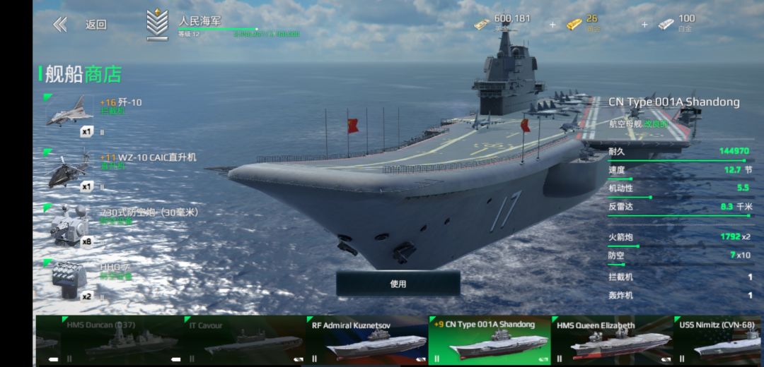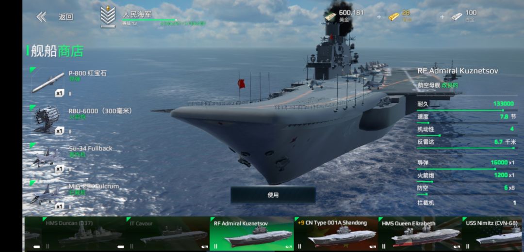 关于那两条前期航母...... 库茨涅佐夫拥有舰载导弹,加强中远距输出,山东舰比库舰多一座火箭炮和防空设备,速度更快,防空全游天花板,近战尚有一战之力,战场生存能力更高,但没有库舰的舰载导弹,而且库舰比山东舰便宜,所以库茨涅佐夫和山东哪个更好就仁者见仁智者见智了,或者你再肝多三十五万买尼米兹也行(航母小知识:战机起飞后虽不可降落,但可飞回航母上空瞬间补满血量和弹药,二级战机中中系最强,但我还是推荐用美系,因为J15虽然输出猛,但没航弹,J15用久了就不会投弹了,而三级机都有航弹,是个输出的大头,所以投弹必须会)