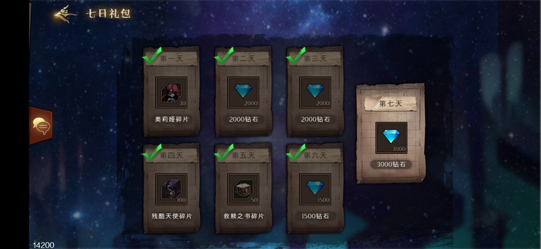 7天礼包只能领6天,我玩了应该有10天了,第六天领礼包还可以领,第七天就领不了,感叹号一直在那显示,点进去也点不了
