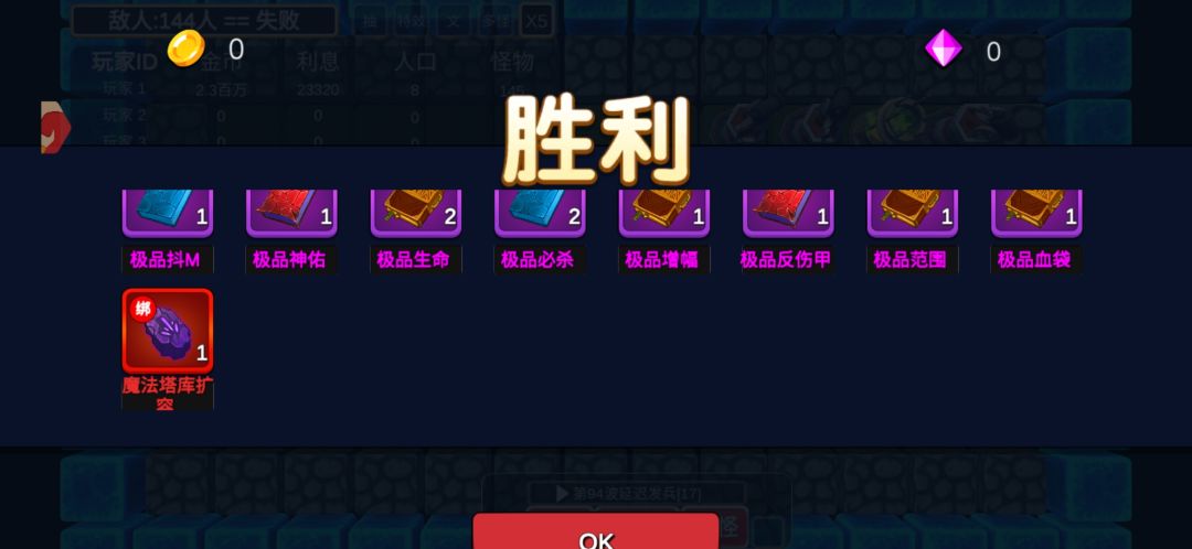 由于女朋友需要我的关怀,后面我就没打下去了,直接出兵草草了事。不知道是不是为了给我写攻略的奖励,我刷了一个月10波结束没刷出来的爆射,竟然在这时候九十多波出了,真是让人恼羞成嘤。