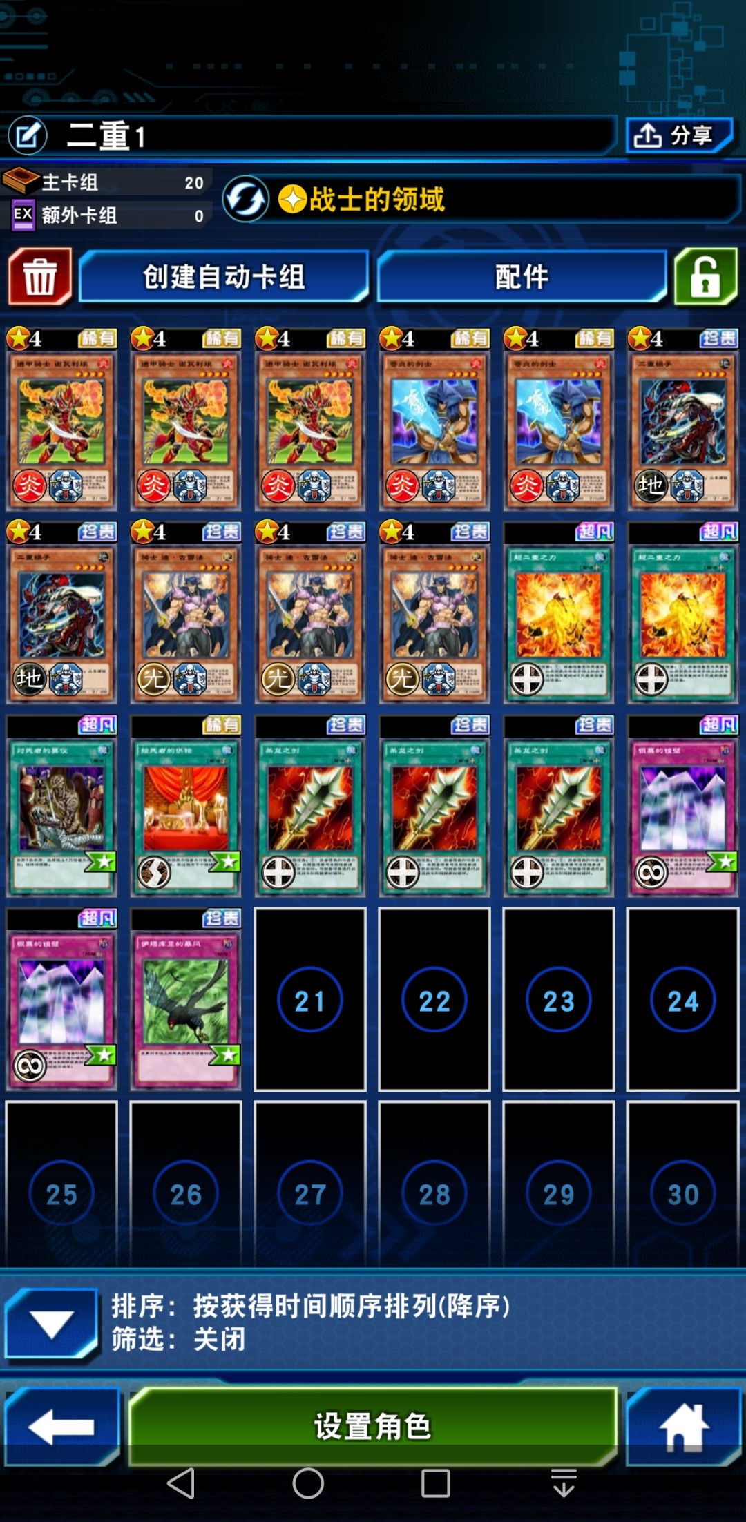 首先第一套是满配,第二套差一张超二重换下杀龙剑