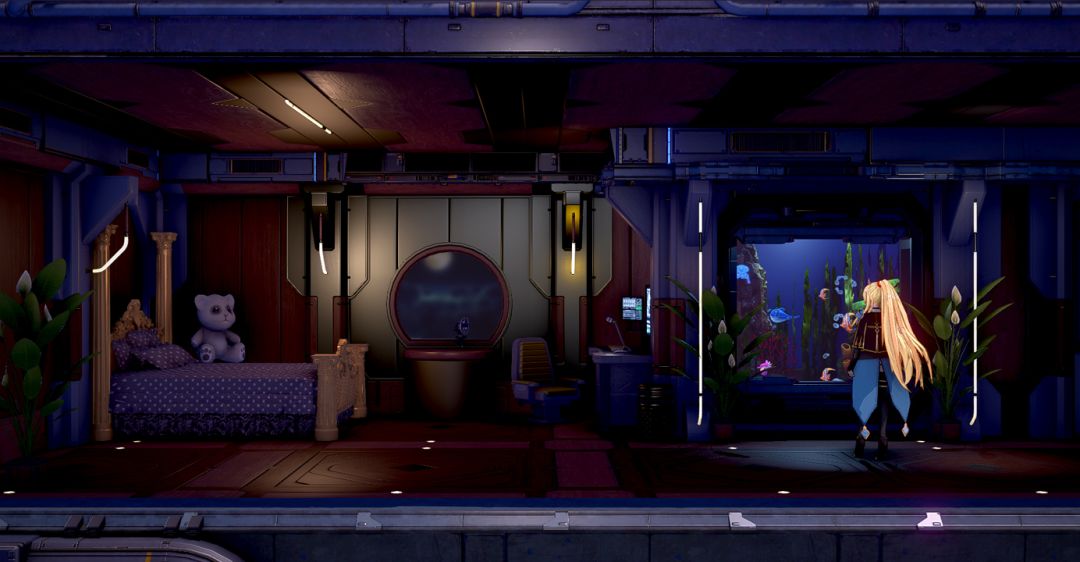 这是在新游戏Frontier hunter的一张场景截图,艾尔莎在"飞空舰"上的房间.