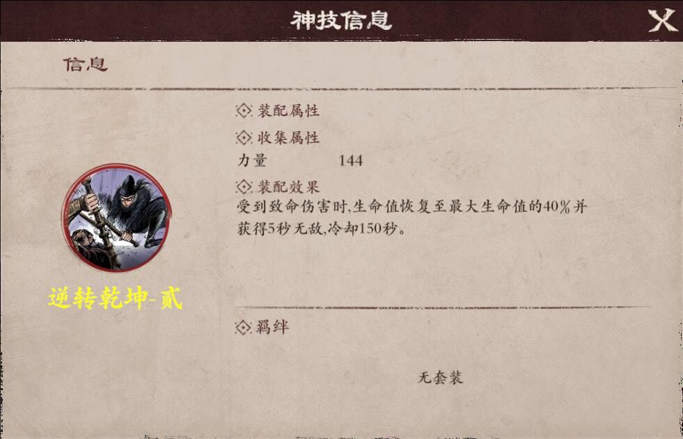 扭转乾坤·貳:受到致命伤害时,生命值恢复至最大生命值40%并获得5秒的无敌时间,冷却150秒。