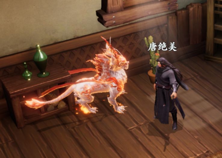 说回《镖人》手游中的赤焰麒麟,首先赤焰麒麟的外观与我们了解的传统神话中的麒麟几乎别无二致,传统麒麟的形象为集狮头、鹿角,虎眼、麋身、龙鳞、牛尾就于一体;尾巴毛状像龙尾,有一角带肉。而《镖人》手游中为了突出赤焰麒麟的赤焰二字在形象上做出了一些修改,例如其身体部分的鳞片与头上的双角都为火云状,眼蕴神光自带不凡之相,一眼望去充满了威武霸气之意。可是说整体形象相当的帅气。