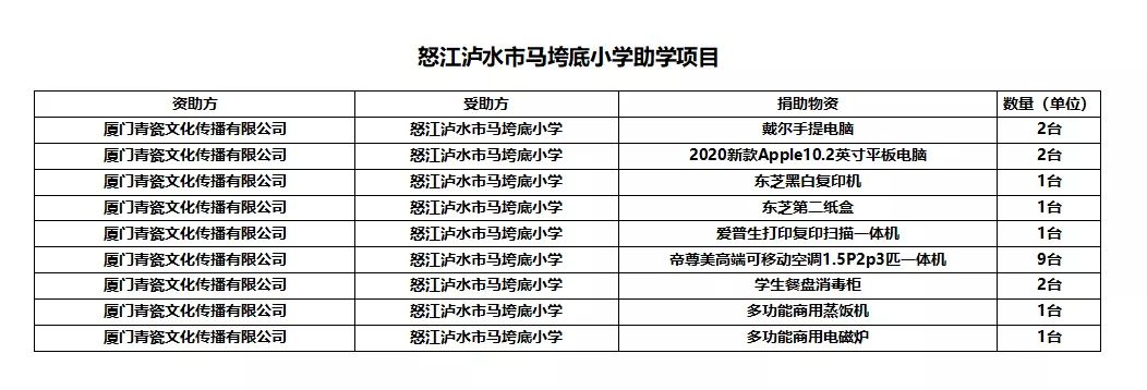 【马垮底小学物资清单】