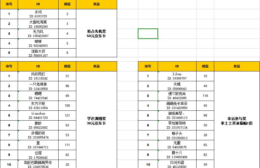 获奖回复楼层截图: