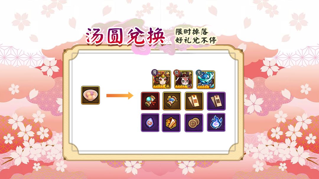 活动期间,副本挂机有几率掉落汤圆,可用于参与汤圆兑换活动,兑换五星英雄、召唤卷轴、御灵卷轴等稀有奖励。