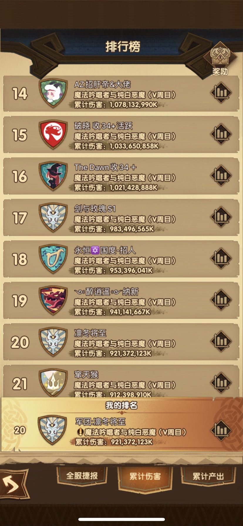 收团本玩家团结友爱工会无大佬靠大家。上次20名